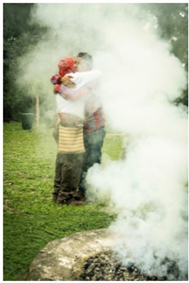 Limpiar el espíritu. En el transcurso del rito, el guía pasa algún material sagrado por el cuerpo de los asistentes, entre rezos, plegarias y cánticos. Luego entrega un poco de incienso, laurel, canela o alguna hierba aromática para que lo coloquen en el fuego como ofrenda. Es una forma de purificación, de limpieza espiritual en la que se eliminan las energías negativas o las enfermedades que padecen.