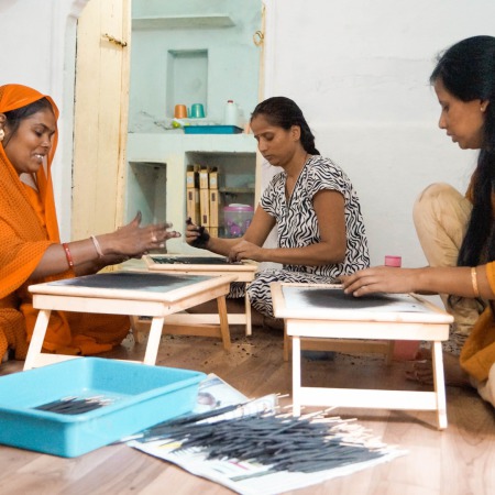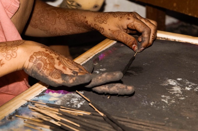 Es un taller que se ha creado en la ciudad de Udaipur. Un espacio donde mujeres en riesgo de exclusión social o con situaciones familiares vulnerables pueden trabajar en la producción artesanal de incienso de manera digna, continua y además aprender y tener más herramientas para mejorar su situación en la sociedad.